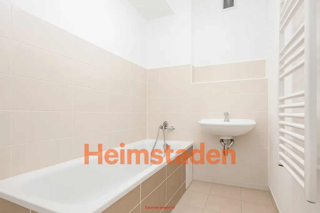 Koupelna je rovněž po kompletní rekonstrukci – najdete zde novou vanu, obklady a dlažbu v moderním dekoru, žebřinové topení i praktické umyvadlo. WC je samostatné. Všechny prvky jsou zcela nové a laděné do svěžího, nadčasového stylu.