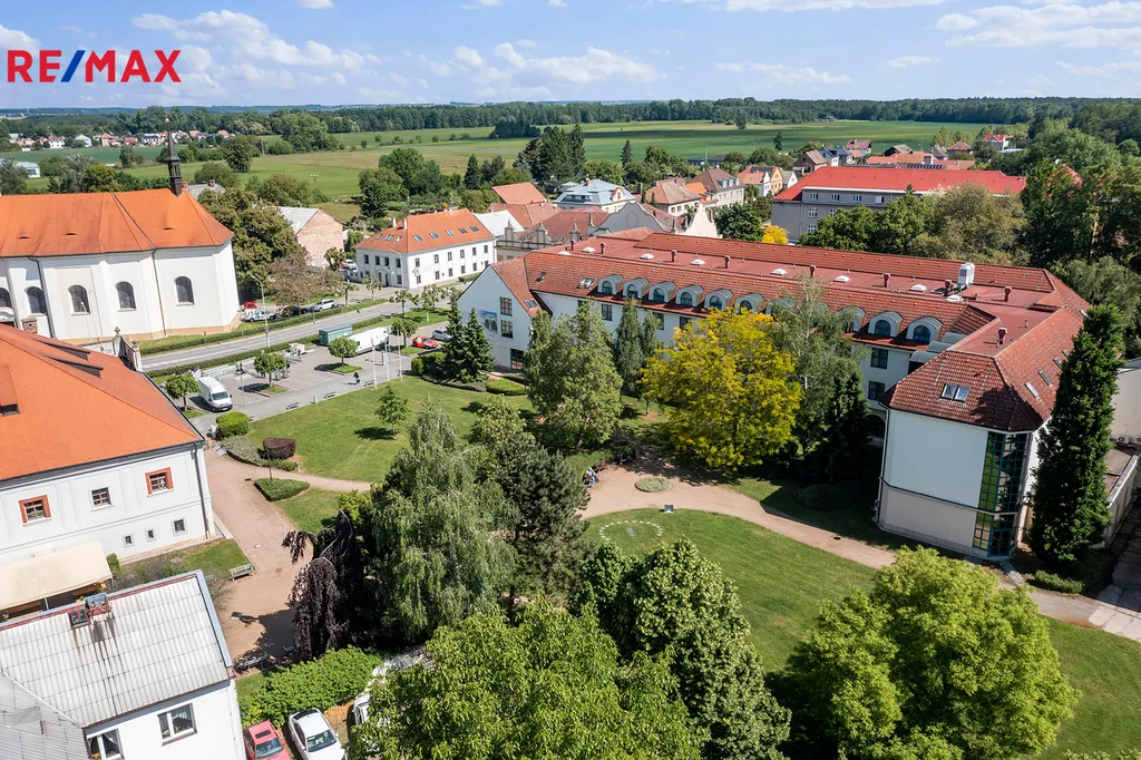 Jedná se o třípodlažní činžovní dům v srdci Lázní Bohdaneč, přímo u místní radnice, v atraktivní a klidné lokalitě s přímým vstupem do lázeňského parku vedle domu.