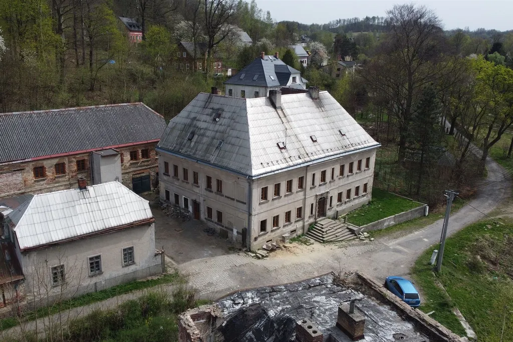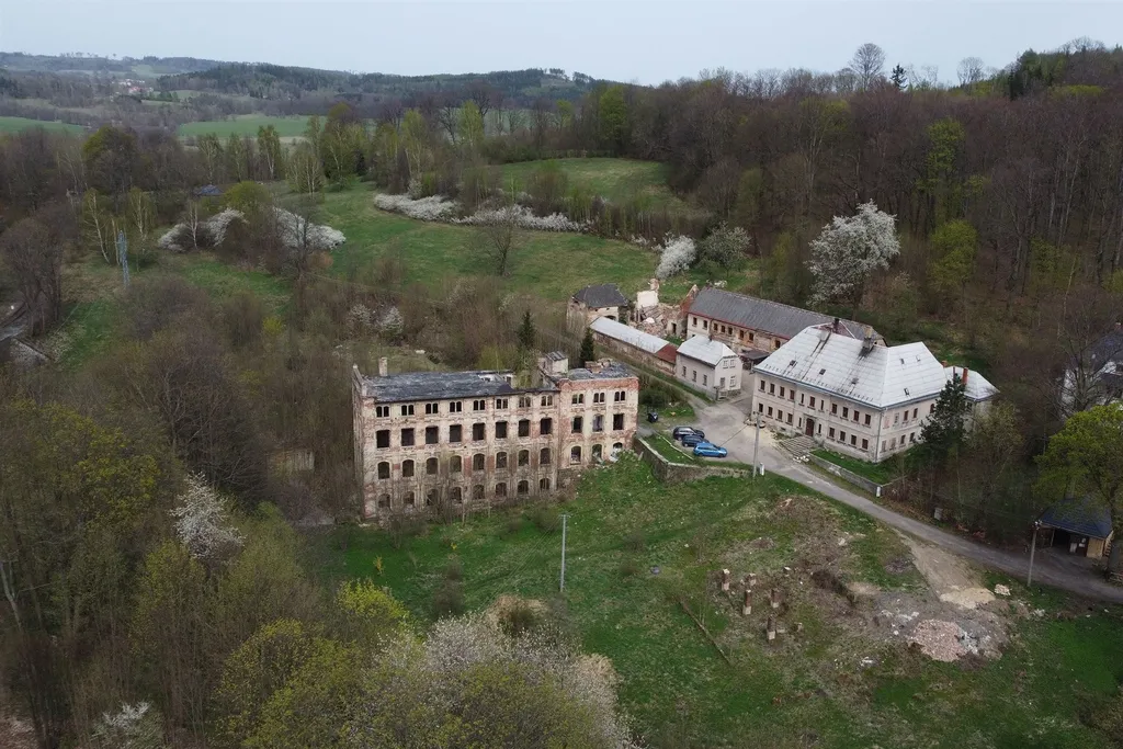Nabízíme k prodeji objekt bývalé továrny, který tvoří bytový dům s pěti bytovými jednotkami o podlahové ploše celkem 538 m2, a k němu náležející vedlejší stavby a pozemky o celkové rozloze 8519 m2. Hlavní budova, tzv. Röslerův zámeček, byla postavena v letech 1817 až 1818 místním podnikatelem nožířem Ignazem Röslerem, přístavba pochází cca z roku 1920. Dále se v areálu nachází vedlejší budova dříve výroba a sklady, a již částečně zbořená budova továrny. Menší domek uvnitř objektu patří jinému majiteli a není součástí prodeje. V budově bývalého zámečku se nachází celkem 5 bytů :