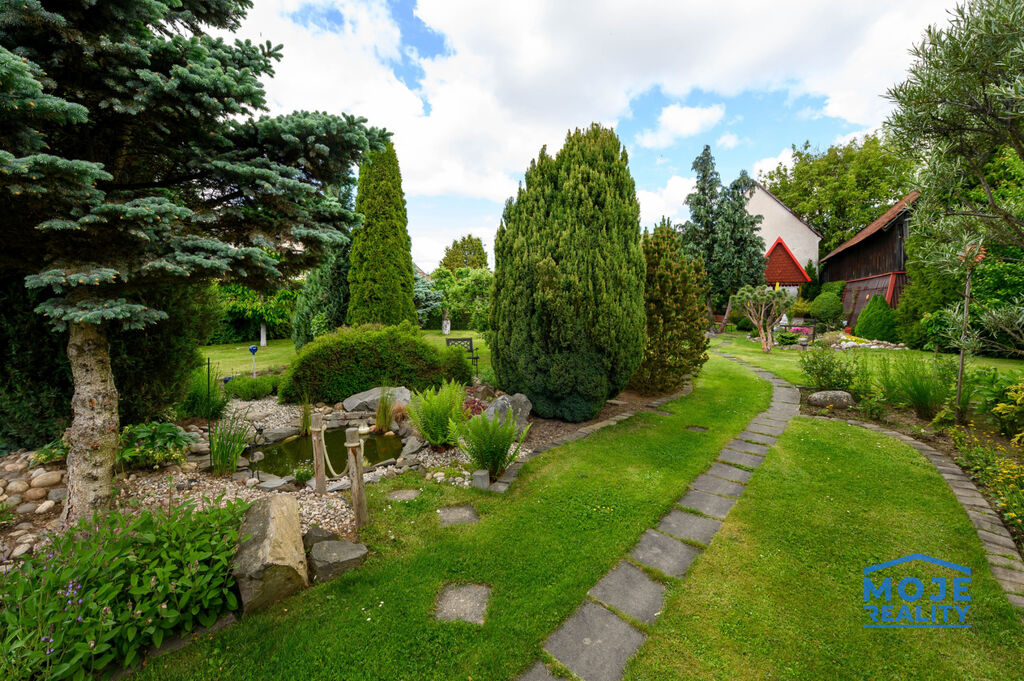 • Rozlehlá, pečlivě udržovaná zahrada o výměře 1400 m², vhodná k relaxaci, zahradničení nebo i dalšímu využití (například další výstavbou). Celková plocha pozemku i se stavbou je1635 m 2 což je v centru obce opravdu velkorysé.