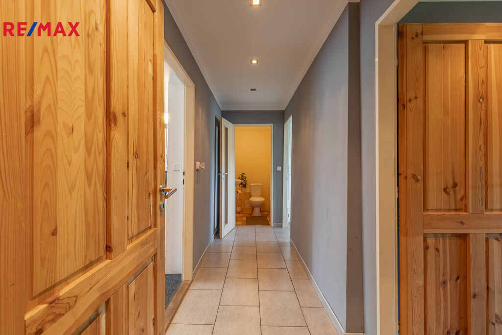 nabízíme Vám k prodeji prostorný patrový rodinný dům se zahradou ve velice klidné a minimálně frekventované části obce Lom, ve slepé ulici Komenského č. p. 401/6. Dům prošel kompletní vnitřní rekonstrukcí a byl od počátku zamýšlen pro bydlení větší rodiny, proto každé podlaží nabízí plnohodnotnou bytovou jednotku vybavenou koupelnou, kuchyní a dalšími pokoji. Samozřejmě je tento dům možné obývat jako celek, přičemž je k dispozici vícero pokojů, některé samostatné, další průchozí, jak je patrné na přiloženém půdorysu, kde jsou také upřesněny rozměry celého domu. Každé podlaží nabízí zhruba 135 m2 užitné plochy, tedy celkem spolu se sklepem 300 m2. Ve sklepě je krom úložného prostoru také umístěn automatický kombinovaný kotel, který lze také využívat pro ohřev vody namísto bojleru. Majitelé si tuto variantu vytápění velice chválí, náročnost s obsluhou minimální a roční nákladovost v podobě uhlí (lze i pelety nebo dřevo) se pohybuje do 60 m3 dle délky zimy. V přepočtu na peníze zhruba 3 tis měsíčně. Stávající hodnota PENB je ve třída „F“, která je zapříčiněna zejména chybějícím zateplením obvodových stěn. Při realizaci souboru opatření lze docílit hodnoty "B".