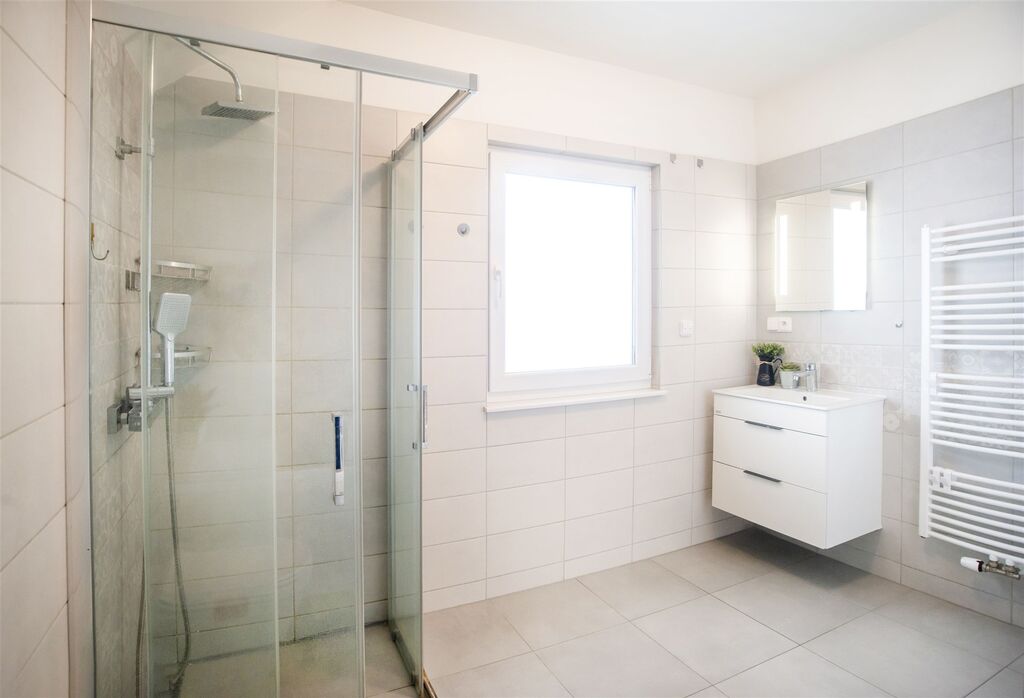 Tento rodinný dům velmi kvalitního provedení je dispozičně řešen jako 4+KK o celkové užitné ploše 111 m2. V přízemí domu se nachází prosvětlená obývací část prakticky propojená s kuchyňským a jídelním koutem se vstupem na zastřešenou terasu a udržovanou zahradu. Dále zde nalezneme technickou místnost a samostatnou toaletu. Dubové schodiště nás zavede do 1. patra domu, kde se nachází samostatné tři pokoje a prostorná koupelna s toaletou. Další praktické úložné prostory nalezneme v půdním prostoru.