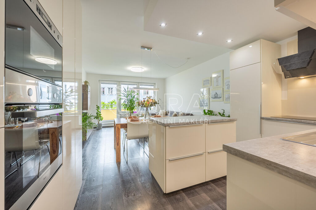 Exkluzivní nabídka prodeje bytu o dispozici 4+kk s lodžií a balkonem, ul. Tyršova, Benešov. Byt je umístěn ve 3. NP bytového domu s výtahem z roku 2012 nacházejícím se téměř přímo v centru města.