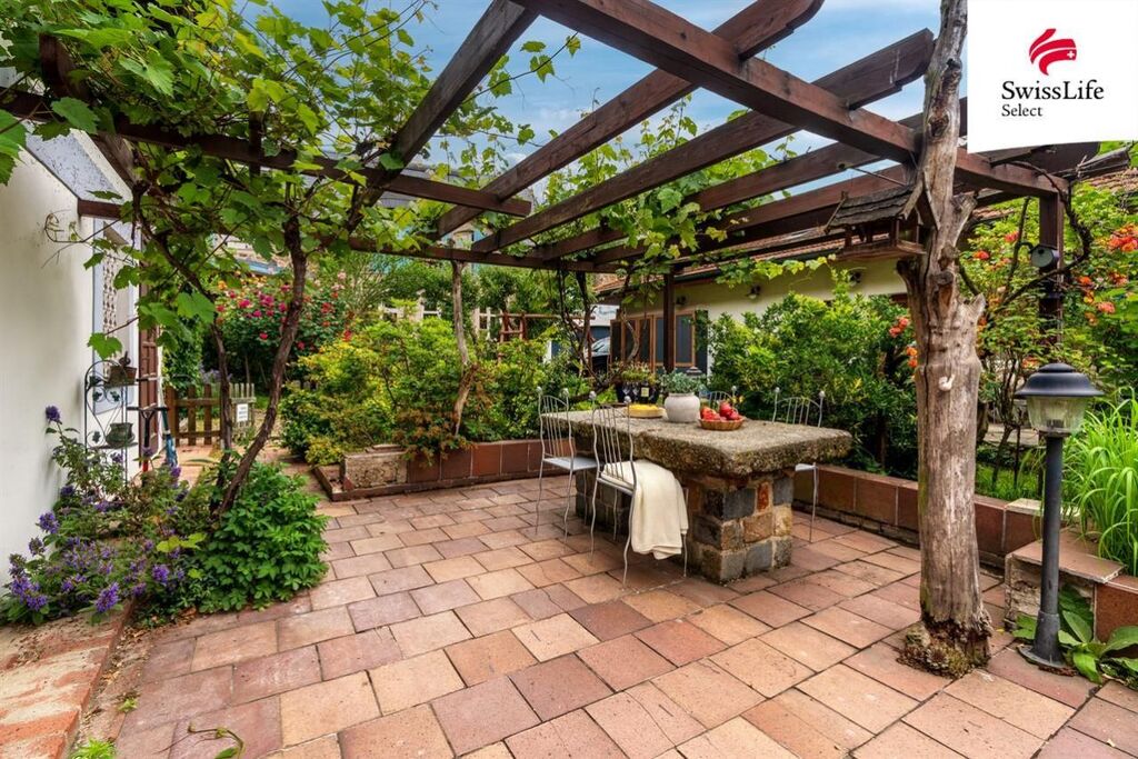 Pronajímaná část domu (byt č. 1) o ploše 364 m zahrnuje v přízemí kuchyň, jídelnu s kachlovými kamny a obývací pokoj s krbem, dále pak samostatnou toaletu, koupelnu a šatnu. V 1. patře 4 samostatné pokoje/ložnice s koupelnou a samostatnou toaletou a v 2. patře pak podkrovní pokoj s umyvadlem a toaletou. Dům je částečně vybaven. K užívání je též venkovní terasa s kamenným stolem, pergolou a jezírkem, sklepení s možností zřízení stylového vinného sklípku (vstup z kuchyně i zahrady) a tři parkovací stání (2 krytá, 1 venkovní). Cena pronájmu je 70 000 Kč + 25.000 Kč zálohy na služby (el. energie, plyn, voda, odpad, vytápění, ostraha). Nájemce si hradí běžnou údržbu, větší opravy zajišťuje pronajímatel.