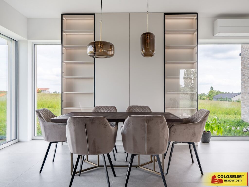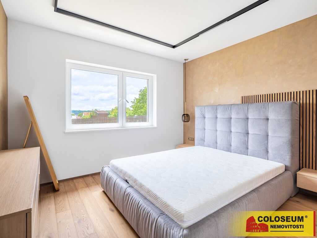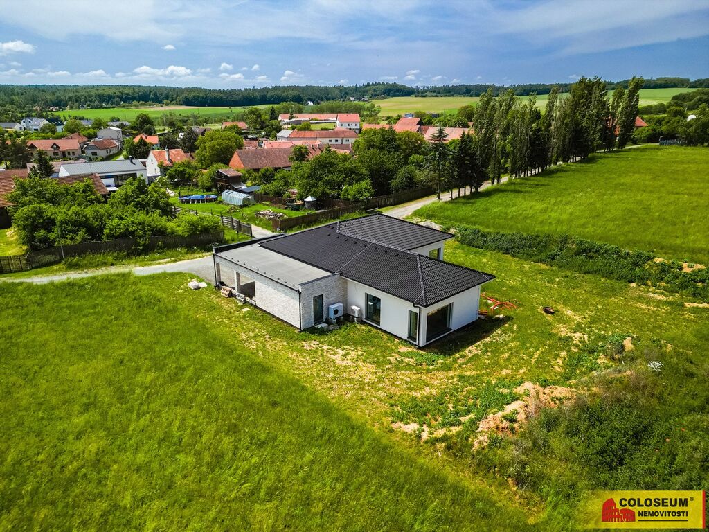 Ve výhradním zastoupení majitele nabízíme k prodeji novostavbu 5+KK moderního bungalovu s podlahovou plochou 274 m² a zastavěnou plochou včetně nádvoří 365 m² (dle údajů z KN) . Nemovitost se nachází v klidné lokalitě s venkovským charakterem a nabízí vysoký standard bydlení. Interiér domu byl navržen renomovaným interiérovým studiem Tempus Design a splňuje náročné požadavky na kvalitu, komfort i estetiku. Součástí nabídky jsou vizualizace zahrady a exteriéru, které mohou noví majitelé využít jako inspiraci nebo se rozhodnout pro vlastní úpravy. Celková výměra zahrady činí 859 m² (dle údajů z KN).