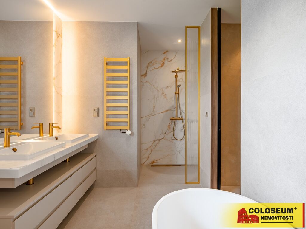 V pokojích, ložnici, šatně a pracovně je položena kvalitní dubová dřevěná podlaha. Ve zbytku domu je použita velkoformátová dlažba o rozměru 120 × 120 cm. Vysoké stropy o výšce 2,7 metru dodávají prostoru vzdušnost a pocit prostornosti. Dům je vybaven třemi klimatizačními jednotkami, které zajišťují komfort během celého roku. V pokojích, ložnici a pracovně jsou navíc instalovány odhlučněné dveře pro větší klid a soukromí.