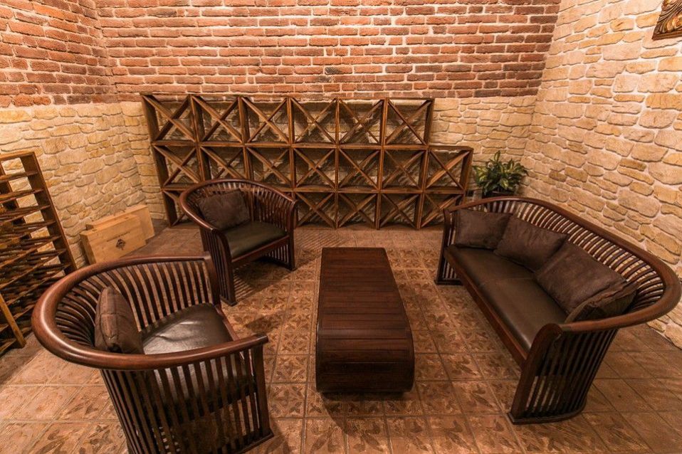 Nájemcům je k dispozici za cenu po dohodě také unikátní privátní vinný sklep v suterénu. Sklep s klenutými stropy prošel rovněž kompletní rekonstrukcí, skládá se ze dvou klimatizovaných místnosti a toalet a umožňuje jak skladování vína, tak příjemné posezení.