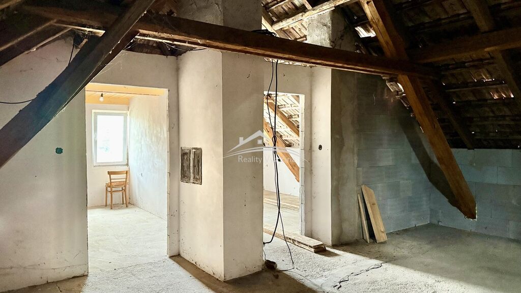 Dům je určen ke kompletní rekonstrukci, nabízí však prostorné a světlé místnosti. V přízemí se nachází tři obytné pokoje, kuchyň a koupelna se sprchovým koutem ve fázi započaté rekonstrukce. Podkroví je připraveno k vybudování obytné jednotky o dispozici 3+kk, okna v domě jsou již v plastová.