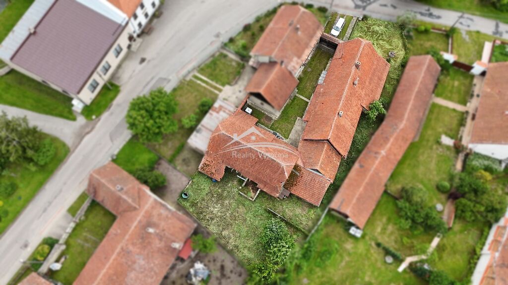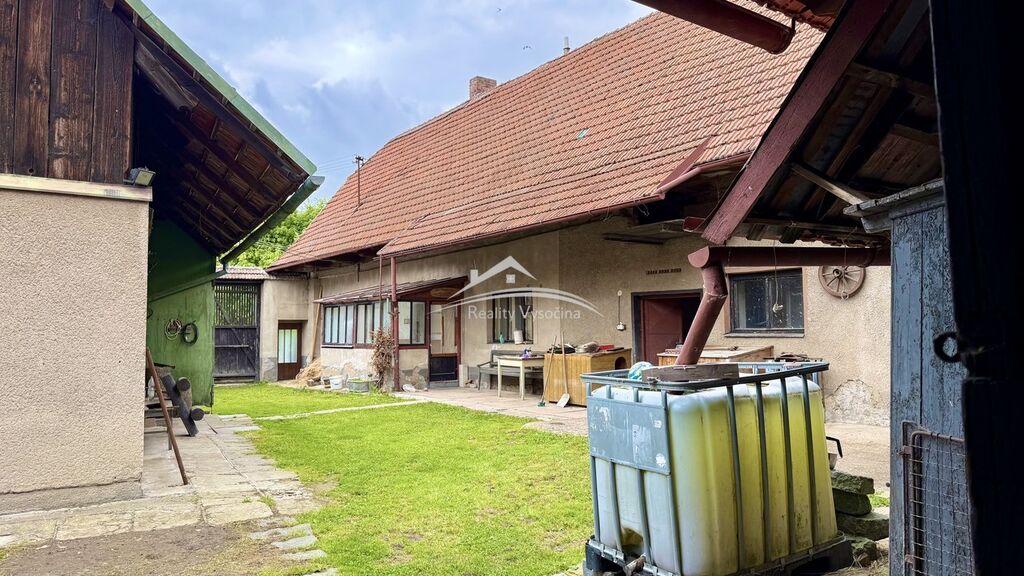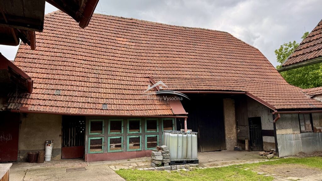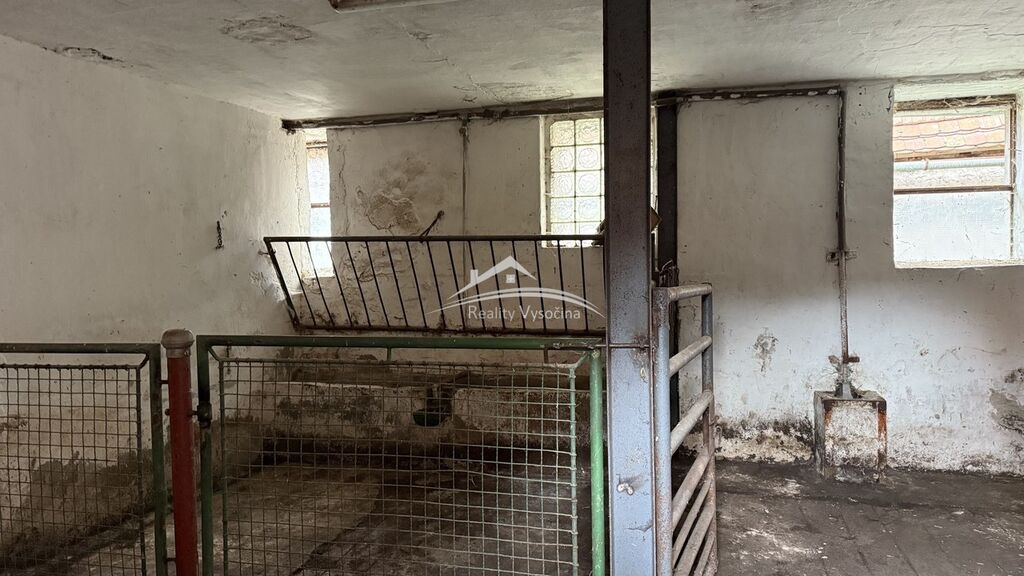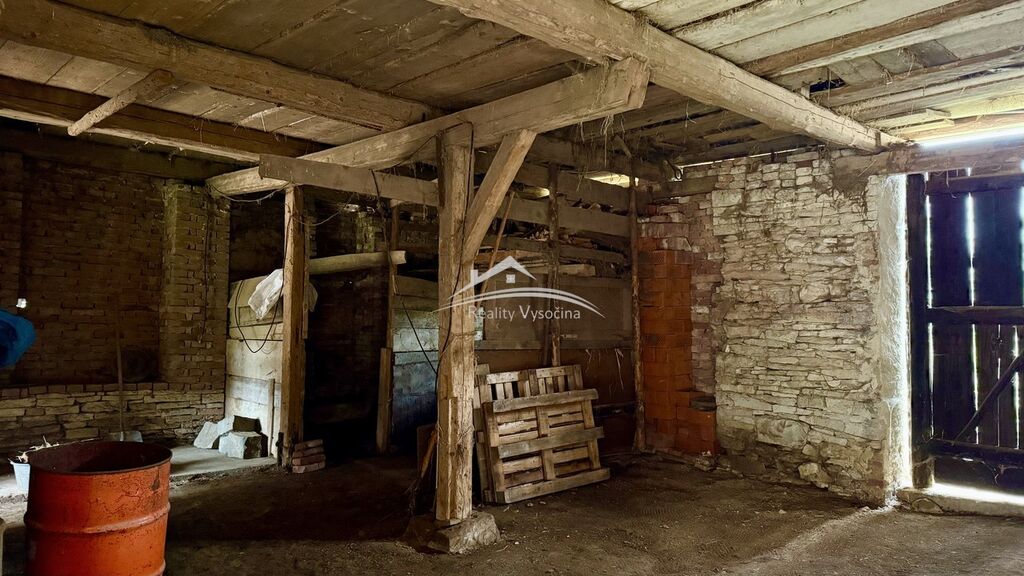 Součástí domu je také velká stodola s přívodem elektřiny, chlévy a další skladovací místnosti navázané na dům.