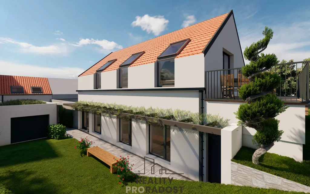 Novostavba rodinného domu 5+kk s obytným podkrovím a garáží na prodej ve vinařské lokalitě Dolní Bojanovice. Užitná plocha cca 171m2, velikost pozemku celkem 989m2. Vnitřní dispozice: 1. NP (přízemí): zádveří, WC, chodba, koupelna, ložnice, 2x pokoj, technická místnost, sklad a vstup, 2. NP (obytné podkroví): obývací prostor s jídelnou a kuchyňským koutem , chodba, WC, terasa. Nad garáží najdete pracovnu a WC.