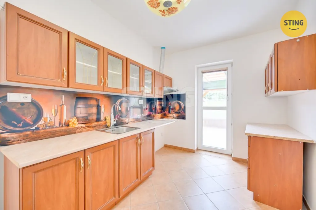 V přízemí domu se nachází byt 2+1 s terasou a pergolou, přes kterou je možné vstoupit na zahradu. V 1.patře je byt 3+kk s následující dispozicí: centrální chodba, prostorná koupelna s rohovou vanou a WC, obývací pokoj s kuchyňskou linkou a jídelním koutem, a 2 samostatné pokoje. Na centrální chodbě se dále nachází komora a schodiště na balkón a půdu, kde lze vybudovat další pokoje.