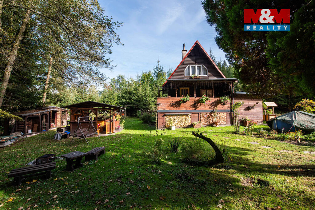 Chata umístěna na pozemku o rozloze 704 m², který poskytuje dostatek prostoru pro zahradničení nebo relaxaci. Stav nemovitosti je velmi dobrý, což umožňuje okamžité využití. Okolí stvořené k výletům. V obci je skiareál a vyhledávaný PINGUin park, tenisový kurt, dětské hřiště, obchod a další vyžití.