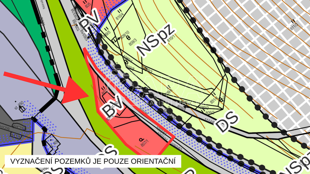Z této plochy je 1 877 m² dle platného územního plánu vedeno jako plocha určená k bydlení v rodinných domech venkovského charakteru. Zbylá okrajová část je plochou dopravní infrastruktury – silniční.
