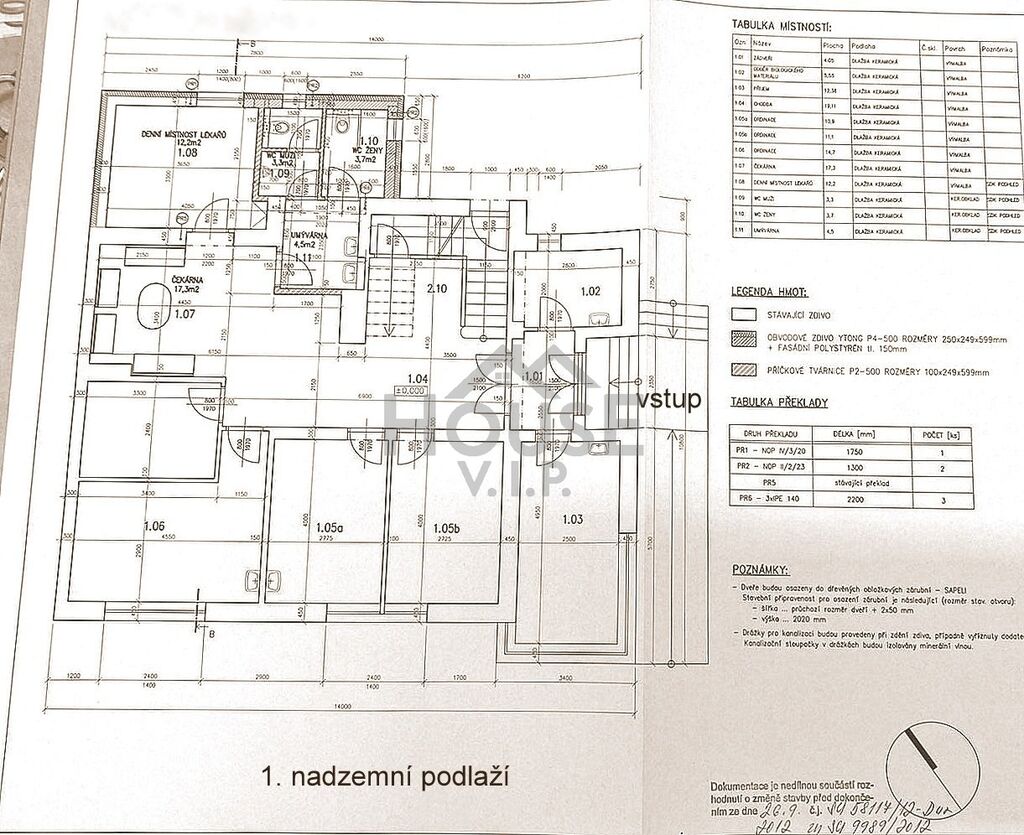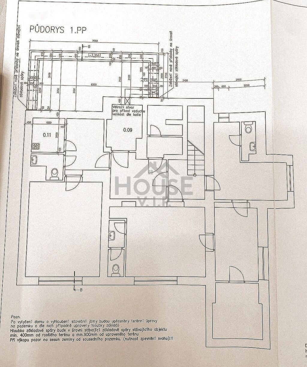 - vnitřní parkoviště pro cca 5 vozidel o velikosti 170 m2,