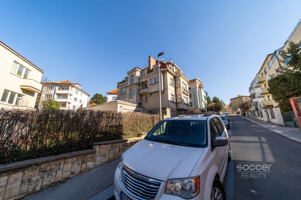 Balkon je přístupný z obývacího pokoje a má jižní orientaci. Dům leží v klidné ulici s vynikajícím dopravním spojením do centra Prahy tramvajemi, na metro B - Karlovo náměstí 5 minut.