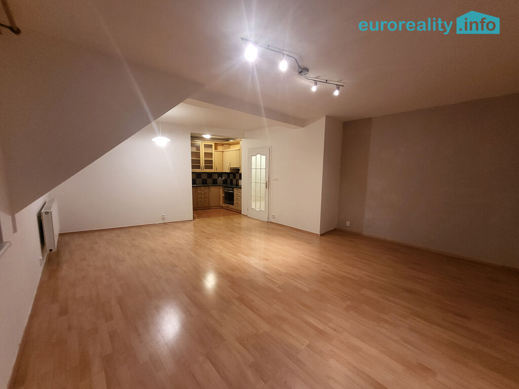 Dispozičně je byt rozdělený na prostorný obývací pokoj s pěkným výhledem, kuchyňský kout vybavený elektrickými spotřebiči a samostatná ložnice se střešními okny. Vstupní chodba s komorou - šatnou a vstup do koupelny se sprchovým koutem a toaletou. V suterénu domu je umístěn velký zděný, uzavřený sklep.