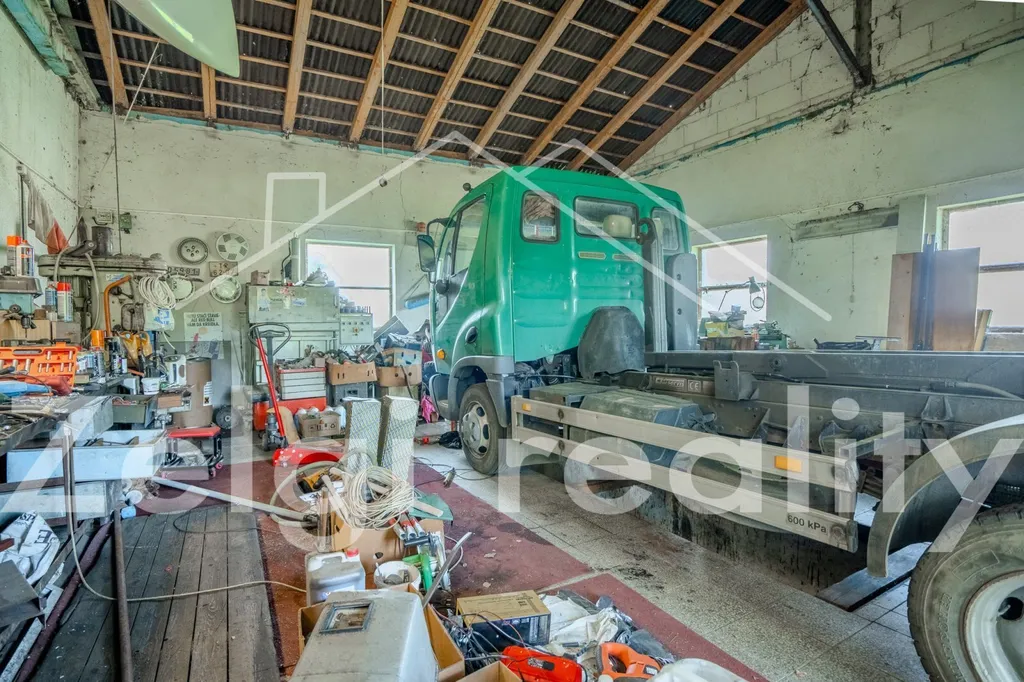 Další zázemí: Menší garáž (63 m²) a velká zpevněná plocha pro manipulaci a parkování.