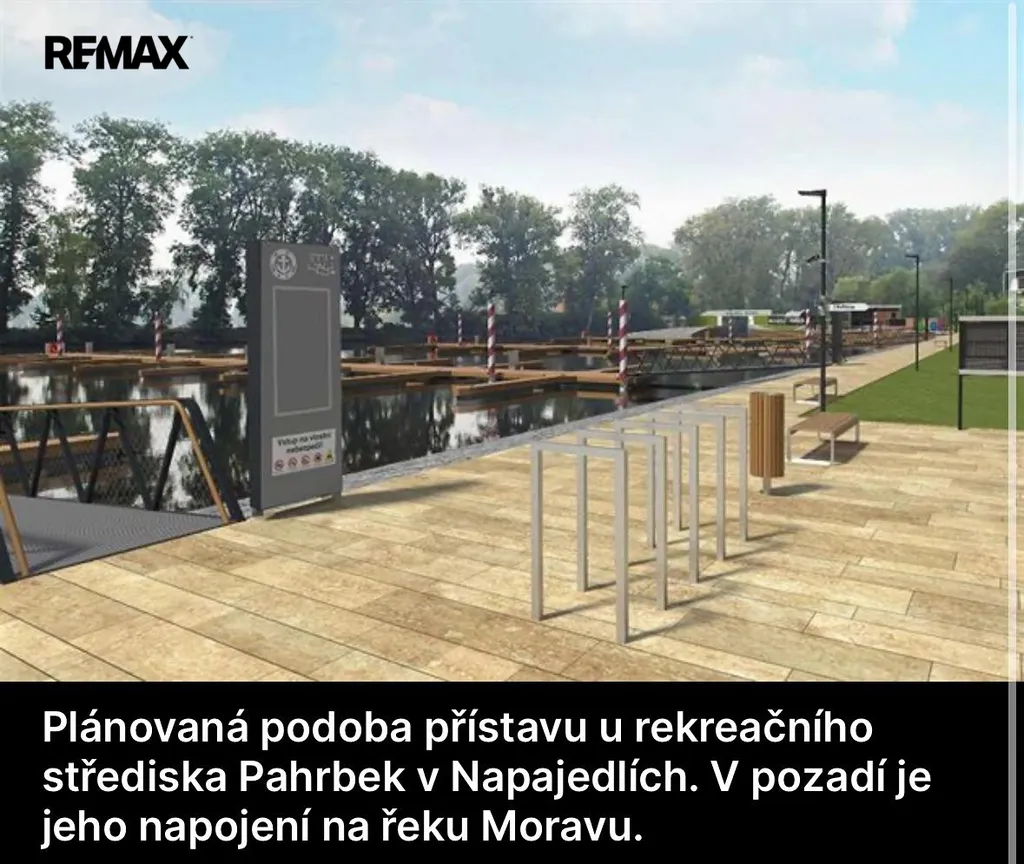 ✔ Budoucí rozvoj oblasti – plánované přístaviště pro cca 90 lodí napojené na Baťův kanál