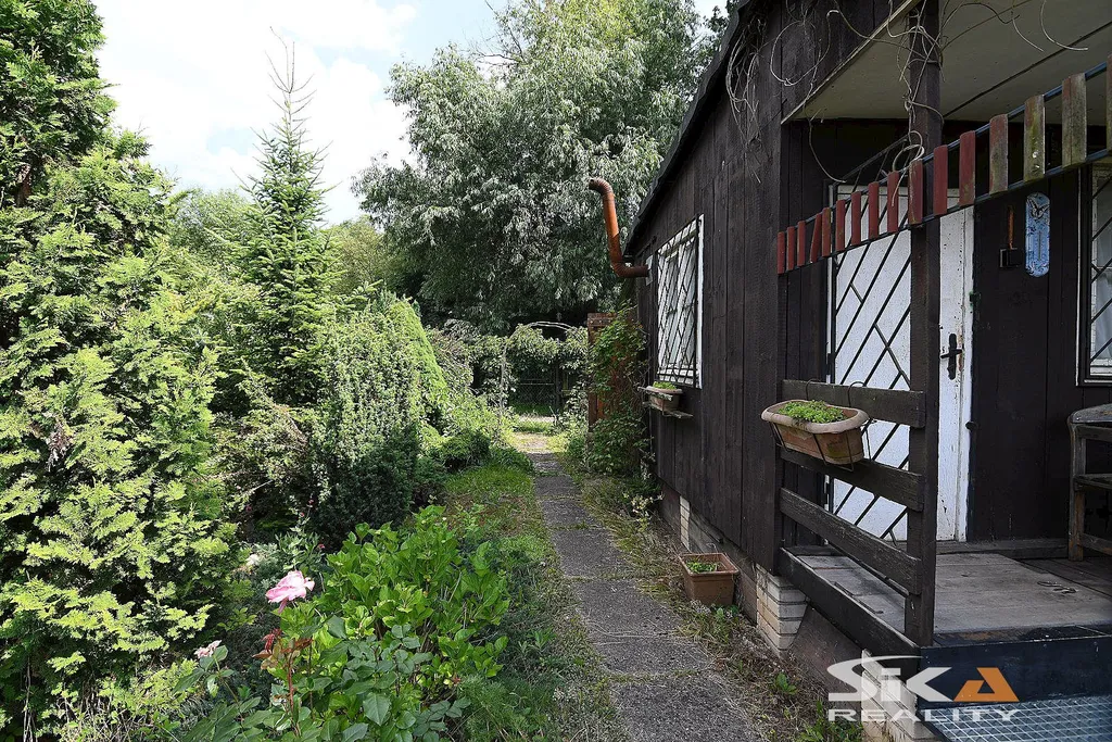 Nabízíme k prodeji zahradu s dřevěnou chatou nacházející se v lokalitě „Na Losech“ za železničním mostem v Lounech. Pozemek má celkovou zapsanou výměru 456 m2, má přibližně obdélníkový půdorys a je z části oplocen (pouze venkovní oplocení, vnitřní oplocení mezi zahradami v kolonii není realizováno). Chata je vystavěna z fošen na pilířích z cementových cihel, v průčelí se nachází veranda, v zadní části navazuje na chatu kůlna na nářadí. Do chaty je zavedena elektrická energie s podružným elektroměrem (přípojku elektrické energie má zřízenu vlastník sousedícího pozemku, který spotřebu rozpočítává). Zahrada má rozvod užitkové vody, která je čerpána z řeky prostřednictví čerpadla umístěného na sousední zahradě (náklady jsou rozpočítávány mezi všechny odběratele). Stavba chaty byla historicky povolena, ale není zapsána v katastru nemovitostí, majitel podniká kroky k zápisu chaty do katastru. Na pozemku je vzrostlá plodící třešeň, švestka, okrasné dřeviny a keře. Dle povodňové mapy povodí Ohře spadá pozemek do zóny pětileté vody, pozemek je dále zasažen ochranným pásmem železnice. Další info poskytneme rádi v RK.