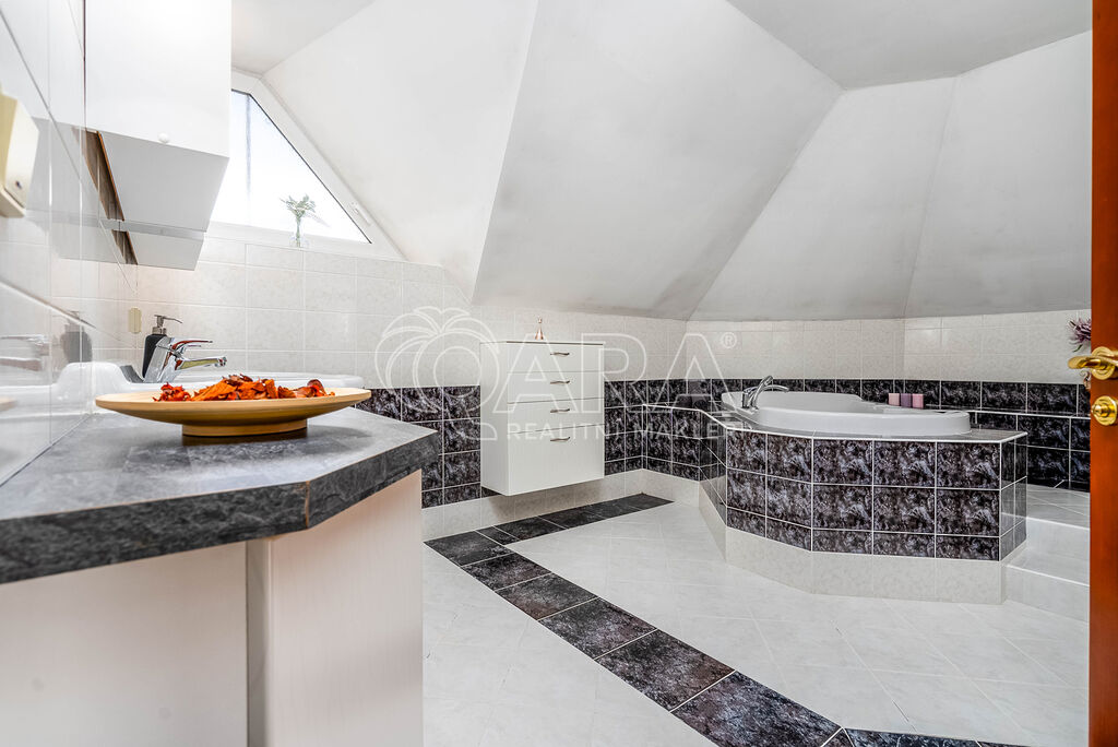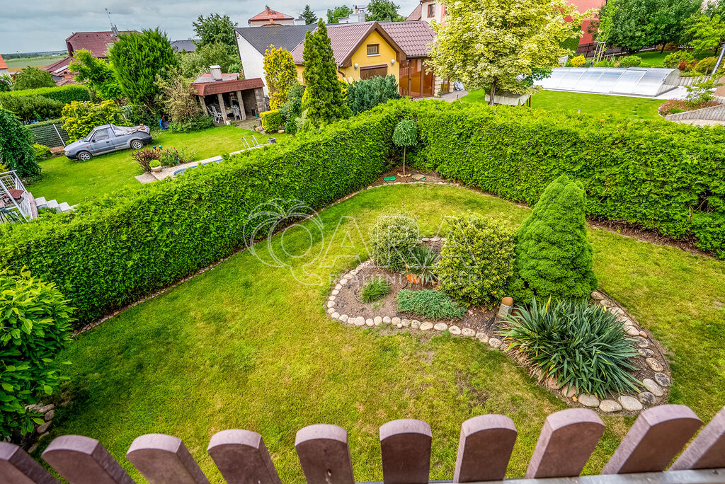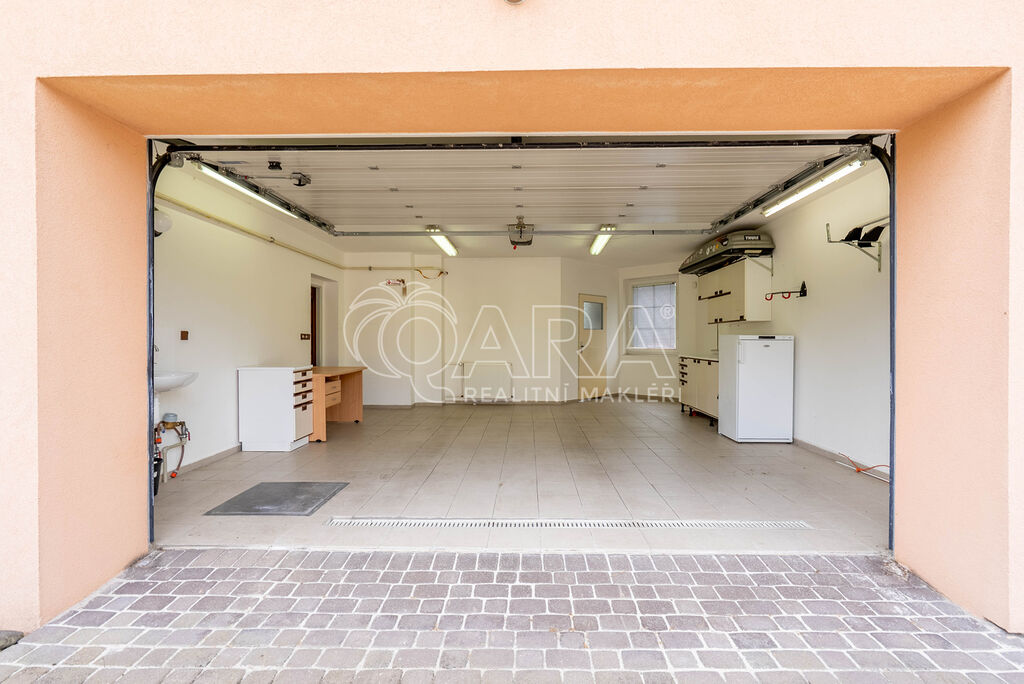 Samozřejmostí je dálkově ovládaná vjezdová brána a vrata garáže, kde pohodlně zaparkujete až 2 auta.
