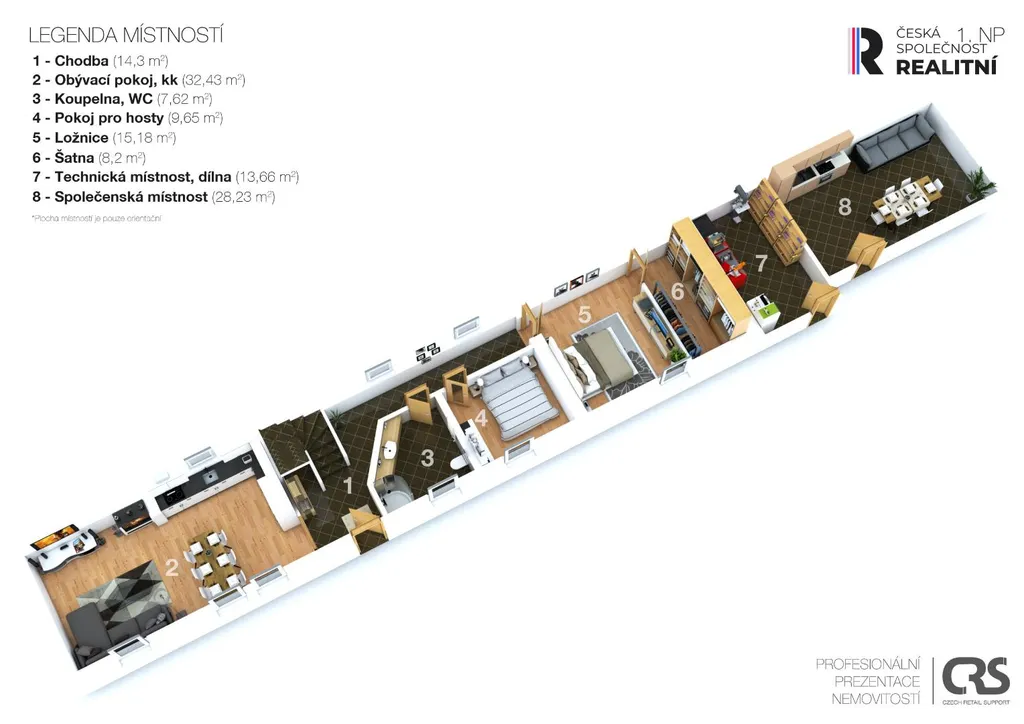 + Podkroví 83 m2, - vinylové podlahy, toaleta, spousta místa na zázemí