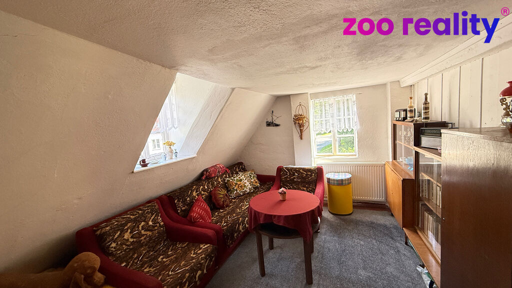Nabízíme k prodeji dům s číslem evidenčním, vedený na katastru nemovitostí jako rodinná rekreace v Krušných horách. Dům je podsklepený, je zde dílna s garáží na jedno střední osobní vozidlo a sklepy. V patře je předsíň, kuchyně s kamny na vaření, obývací pokoj s krbovými kamny, ložnice, samostatné WC a koupelna se sedací vanou a umyvadlem. Do podkroví jdeme dřevěnými schody, kde se nalézají tři pokoje, čtyři komory, lze využít i půda. Zahrada je oplocená, svažitá, je zde zahradní domek s posezením. Dům je v původním zachovalém stavu, zůstane zařízen. V domě jsou nové rozvody v mědi. Více info u makléře.