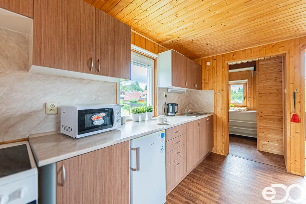 Dispozice objektu zahrnuje hlavní obytný prostor s kuchyňským koutem, koupelnu se sprchovým koutem a toaletou a příjemnou venkovní terasu, která láká k posezení u ranní kávy či večernímu grilování. Vše je prakticky řešené a připravené k okamžitému užívání.