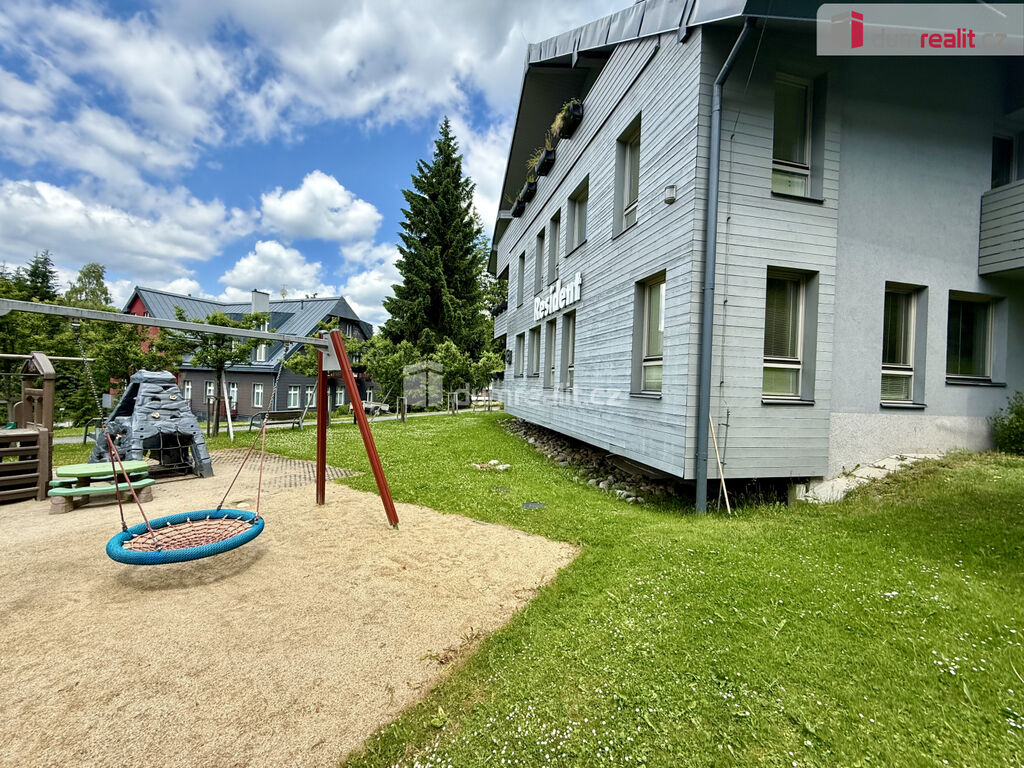 prodej zbrusu nového, prostorného horského apartmánu 3+kk (140 m²) s vlastní předzahrádkou (23 m²), třemi koupelnami, sklepem, garážovým stáním i vlastním venkovním parkovacím místem, umístěný v uzavřeném areálu Resort Resident Harrachov. Apartmán se nachází v klidné části resortu a nabízí krásný výhled na hory. Apartmán rovněž disponuje moderní, rekuperační jednotkou s rozvody do všech místností.