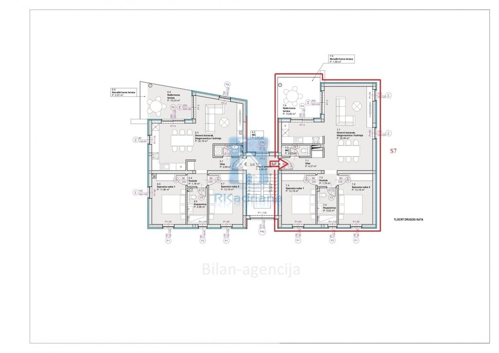 Nabízíme k prodeji luxusní byt o rozloze 99 m2, který se nachází ve 2. patře moderní novostavby, pouhých 350 m od moře. Je také v blízkosti veřejné dopravy, obchodů, pekárny, kina a divadla.