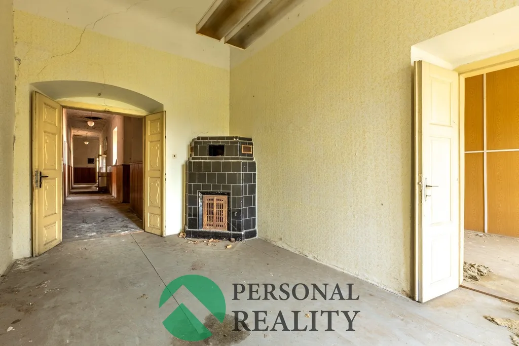 Nabízíme k prodeji barokní zámek, což není zrovna běžná nemovitost s vlastním areálem s několika budovami. “Zámek je trojkřídlá patrová budova se schodišťovým rizalitem s kasulovým oknem na hlavní východní fasádě“. Takhle se to píše na stránkách obce. Za mě už u vstupu do budovy jsem byl překvapen velkými prostorami, širokým schodištěm i chodbou. Krásné klenuté stropy, dochované obložkové dveře s kováním a různé barokní prvky. Ty jsou nejvíce vidět na fasádě, kde se nám bohužel momentálně roztahuje květena. Zámek je opuštěn cca 30 let, kdy zde bylo prosperující zemědělské družstvo a plnily se kvóty komunistického režimu. Zbylo tu po nich trošku umakartu a nástěnky s holubicí. Bohužel se díky nepořádku nedalo moc fotit, ale aspoň se máte při prohlídce na co těšit. Co se týče okolních budov, tak velká dílna byla posledním majitelem zrekonstruována jako dílna sloužící k opravě nákladních automobilu. V horní části je to pak velká stavba sušárny chmele a skladů, nebo garáží. Samozřejmě se zde najde i konírna či chlévy. To bylo dříve zapotřebí. A benzínka? To nechám na Vás. Bohužel se nikde nedochovali žádné záznamy, ani dokumentace a tak si říkám, že třeba je to dobře, že ta nová historie zámku teď čeká na Vás. Hezký den a volejte RK. Díky P