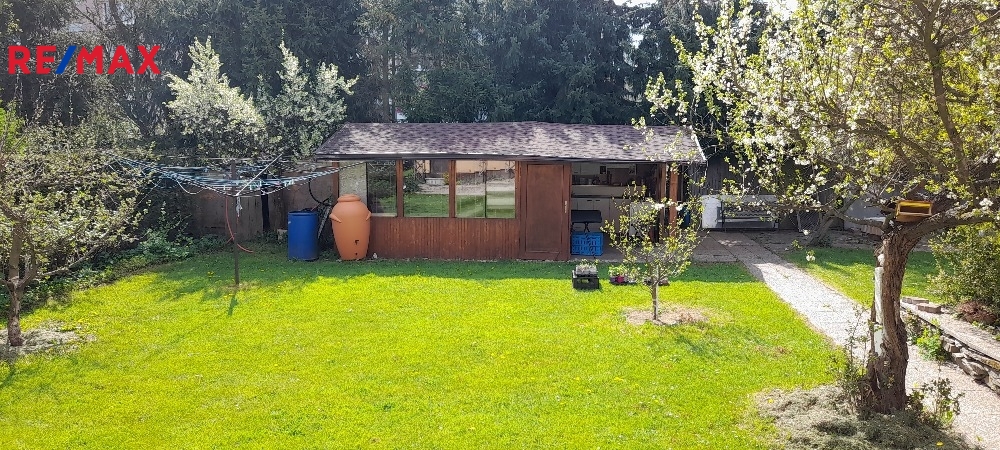 Vstup do domu je ze zahrady, kde stojí hospodářská budova a zahradní domek vybaven kuchyní.
