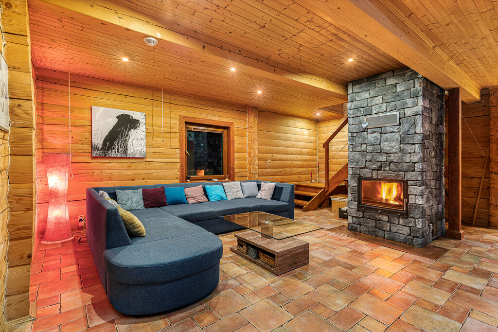 4 ložnice, 2 koupelny, prostorný obývací pokoj s krbovými kamny, kuchyňský kout a jídelna s přímým vstupem jak na venkovní terasu, tak do prosklené terasy/zimní zahrady, jenž je ideální místem pro ranní jógu, posilovnu či ateliér, fantazii se meze nekladou. V patře dále naleznete otevřenou galerii s jedinečným výhledem do krajiny.