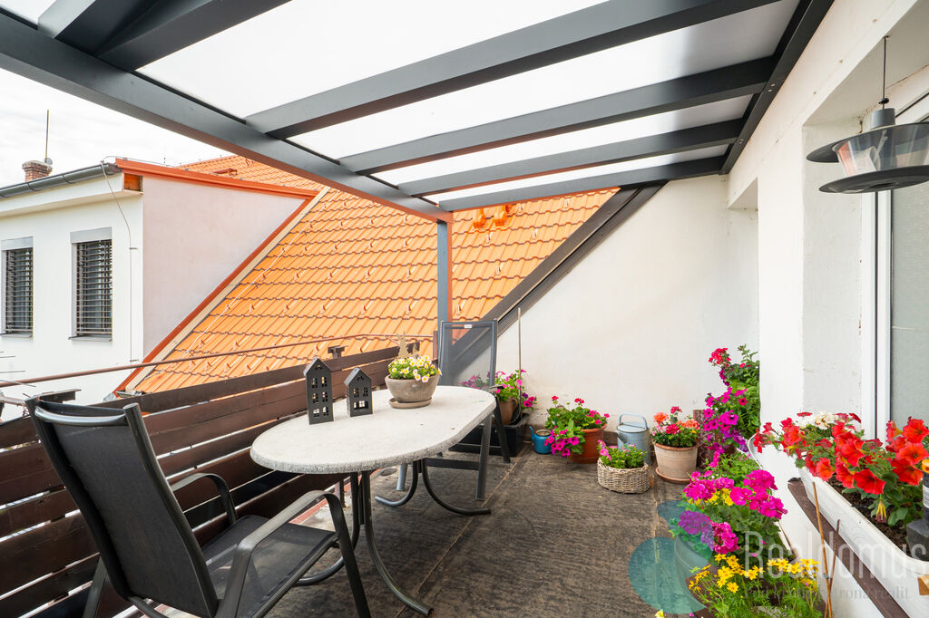 Velkým benefitem je terasa o rozloze 12 m², která byla v loňském roce zastřešena hliníkovou konstrukcí. Je ideální pro ranní kávu, večerní relaxaci nebo posezení s přáteli s výhledem do okolí.