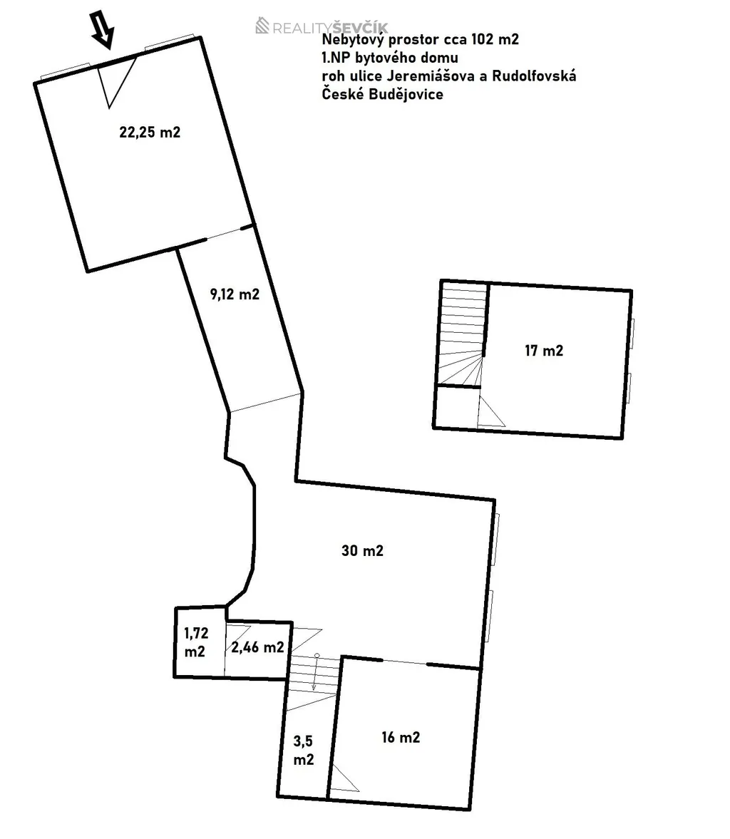 Pronájem obchodního prostoru, České Budějovice - České Budějovice 3, Jeremiášova, 102 m2