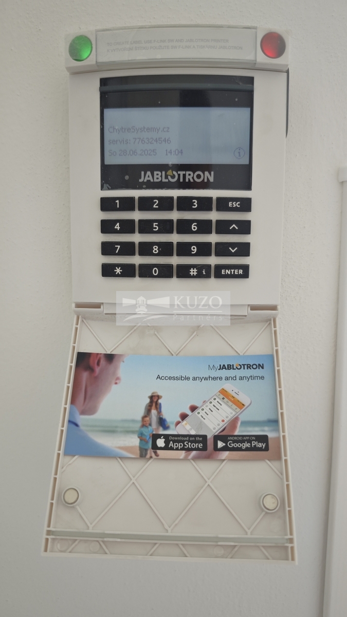 Dalšími benefity této nemovitosti jsou kamery a PCU Jablotron, které zajišťují bezpečí a ochranu. Elektřina je zajištěna na 230 V s 40A jističi a dům je napojen na vodovod. Pro majitele elektroaut je příprava na zásuvku, což usnadní nabíjení vozidla přímo u nemovitosti. Okna s trojskly garantují nízké náklady na energie a komfortní bydlení.