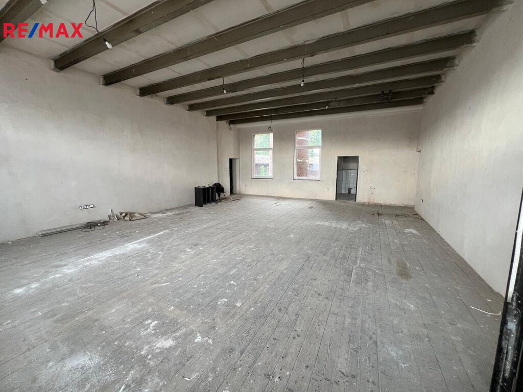 chodba se vstupem přes dveře o výměře 12 m2, kancelář č. 2 o výměře 20 m2, zadní garáž přístupná