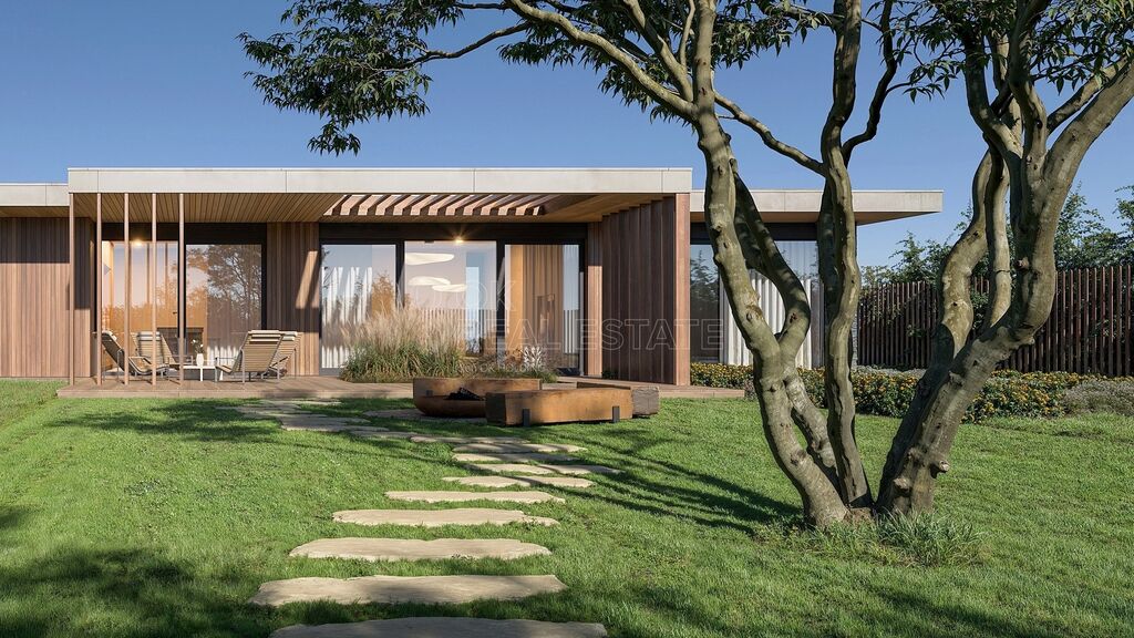 Pokud si budete přát, můžete si od majitele dokoupit i architektonickou studii od od renomovaného studia Expert Architects (EXA) a také zajištění stavebního povolení na vyprojektovaný dům. Moderní bungalov má hrubou podlahovou plochu 184 m2 a čistou 150 m2, dřevěná terasa bude mít 48 m2. Dispozice bude 4+kk, nechybí 2 koupelny, šatna nebo technická místnost. Parkování v severní části pozemku je koncipováno jako přístřešek pro 2 automobily. Vytápění a ohřev vody obstará tepelné čerpadlo vzduch-voda, počítá se s podlahovým vytápěním.