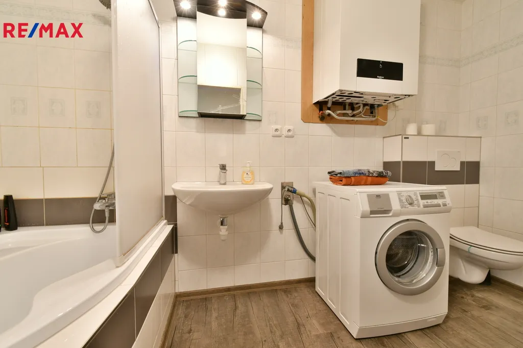 Součástí domu je prostorný obývací pokoj s kuchyňským koutem, dětský pokoj, ložnice, chodba, WC v přízemí, koupelna s WC v patře, terasa a předzahrádka. Celý dům je vytápěný vlastním plynovým kotlem. Jsou zde celkově nízké náklady na energie. Do společného fondu s ostatními vchody se měsíčně vybírá cca 2.500,- Kč na případné společné opravy střechy nebo jiné záležitosti. Zajímavým prvkem je ekologická zelená střecha s vegetačním pokryvem, díky kterým má dům výborné izolační vlastnosti.