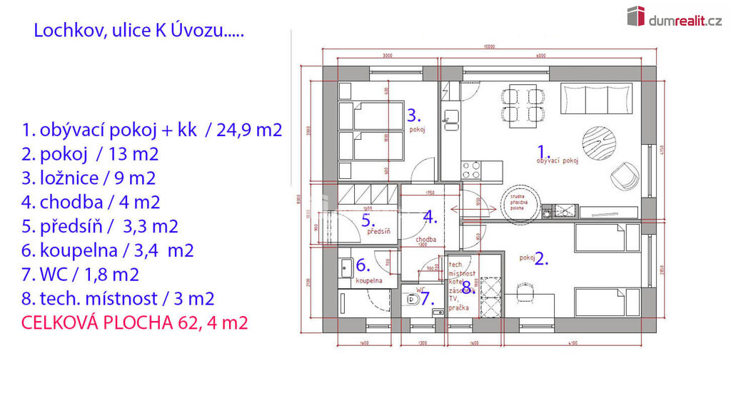 Hledáte menší rodinný dům s dispozicí 3+kk v Praze, ideálně s bazénem a garáží? Mám zde pro vás exkluzivní nabídku domu z roku 2017, v ulici K Úvozu, Praha 5 – Lochkov. Tento moderní dům s dispozicí 3+kk, garáží a 3 x parkovacím stáním, pozemkem 837 m² je ideální volbou pro ty, kteří hledají menší dům v top stavu, navíc s velkým bazénem zn. Desjoyaux - 10 x 5 x 1,5m hloubka. Dispozici domu tvoří – obývací pokoj 24,9 m², pokoj 13 m², ložnice 9 m², chodba 3,3 m², koupelna 3,4 m², WC 1,8 m² a technická místnost 3 m². Topení domu bude zajištovat elektrokotel a ohřev vody elektrický bojler, lze instalovat solární panely. Dům má nově vlastní sítě – vlastní elektrickou přípojku, vodovod, odpad bude do vlastní jímky (časem lze dopojit na kanalizaci - aktuálně je stopstav s čističkou v Lochkově). K domu patří zděná garáž (22 m²) a zahradní domek (10 m²) s 15 m² altánem pro posezení, 3 x parking na vlastním pozemku a ½ příjezdové cesty (20,5 m²). Na KN je vše řádně zapsané a rozdělěné. U tohoto domu je možnost přístavby - rozšíření, je v osobním vlastnictví, lze ji financovat hypotečním úvěrem, je v TOP stavu a připravena dle dohody k nastěhování. V ceně domu a domku jsou kuchyně + spotřebiče, vestavěné skříně a osvětlení, ostatní dle dohody – více info v RK. V případě zájmu lze koupit větší dům hned vedle, 6+kk, 261 m², pozemek 1081,5 m². V okolí domu je absolutní klid, zastávka MHD (bus č. 120 – Lochkov je 2 minuty od domu, potraviny také do 5 minut pěšky, dále je v pražské části Lochkov – obecní úřad, fotbalové hřiště, tenisové kurty, venkovní posilovna, městská policie, mateřská školka, autem pak na Pražský okruh 5 minut. Ev. číslo: 650580.