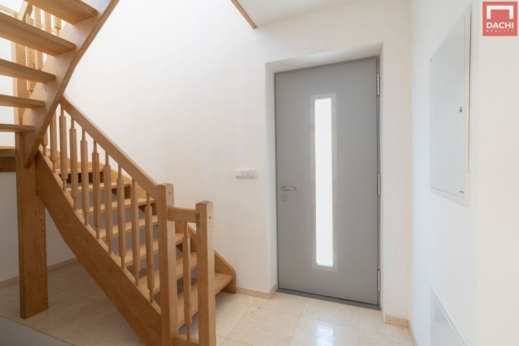 Vstupní zádveří se schodištěm z masivního dubového dřeva do patra a vstupem do sklepa