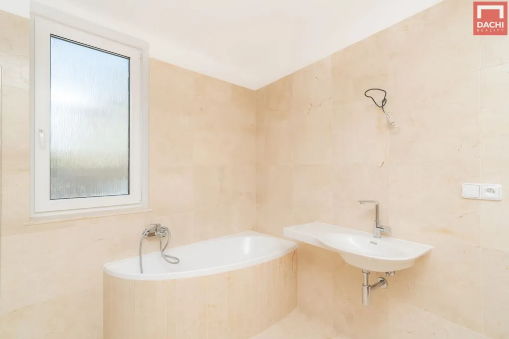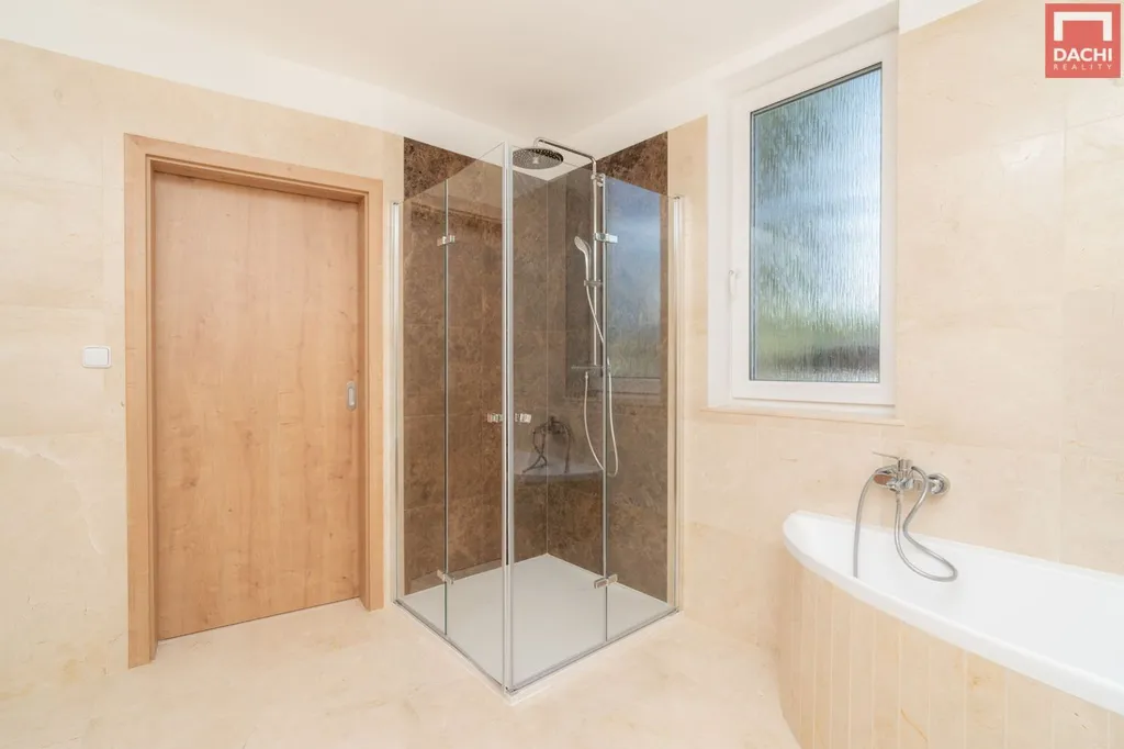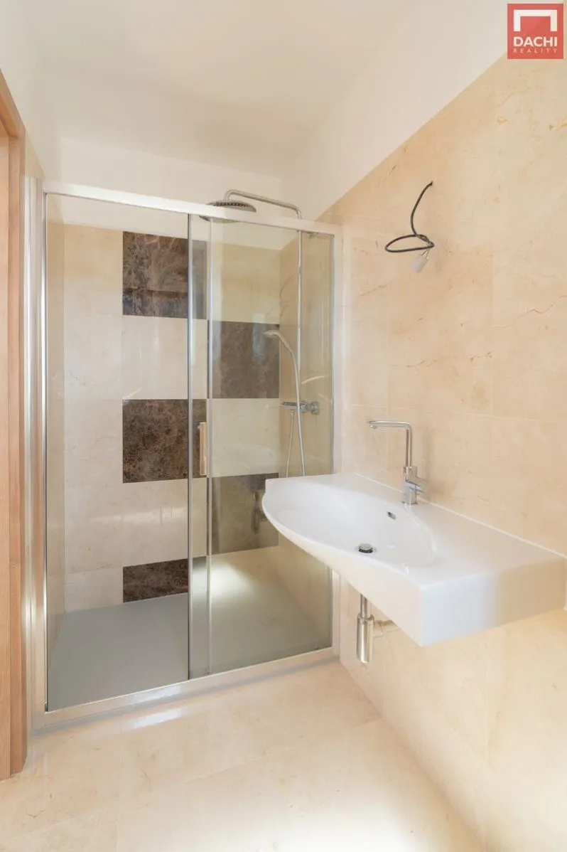 Druhá koupelna s WC a sprchovým koutem mramorový obklad a sanita Laufen
