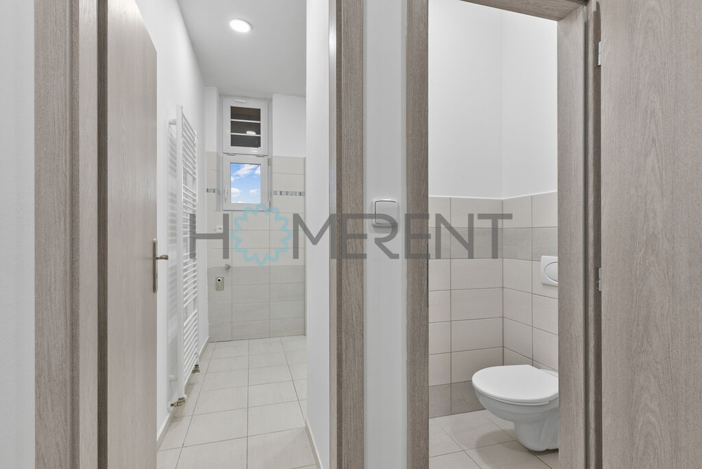 - Koupelna je moderně zařízena se sprchovým koutem a WC je oddělené.