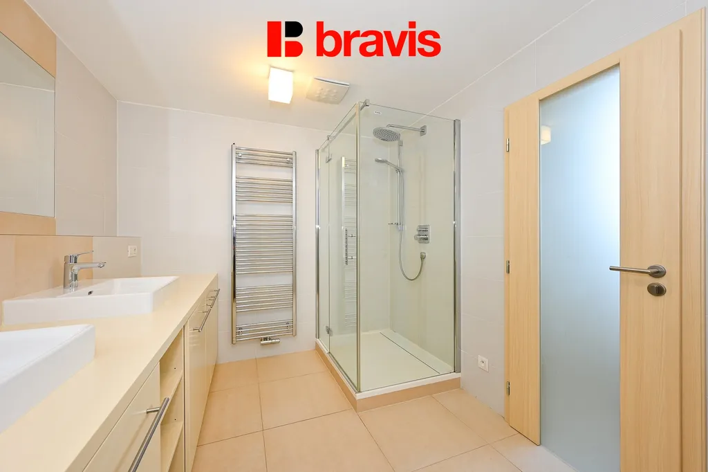 Apartmán o podlahové ploše 97 m2 poskytuje výjimečné podmínky pro bydlení, naprostý klid a jedinečný výhled na Brno a okolní krajinu. Dispozičně je tento apartmán řešen jako 3+kk a hlavní dominantu tvoří prostorná kuchyň s obývacím pokojem a přímým vstupem na terasu (12 m2), která slouží pro relaxaci či k posezení. Obytný prostor doplňují dva prostorné pokoje, nadstandardní koupelna se sprchovým koutem, samostatné WC a praktická šatna s úložným prostorem. Samozřejmostí jsou předokenní žaluzie a klimatizace v celém prostoru apartmánu, kterou lze regulovat pomocí moderních technologií.