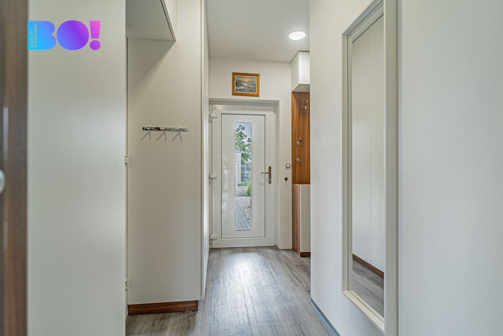Dům byl postaven v roce 2016, přístavba proběhla v roce 2024. V přízemí se nachází kuchyň s jídelnou a obývacím pokojem, pracovna, koupelna se sprchou a samostatné WC. Z obývacího pokoje je přístup na prostornou terasu s výhledem na zahradu. V 1. patře najdeme ložnici, další dva pokoje, koupelnu s vanou a samostatné WC. Úložné prostory jsou řešeny vestavěnými skříněmi v chodbě a přístupem na půdu.