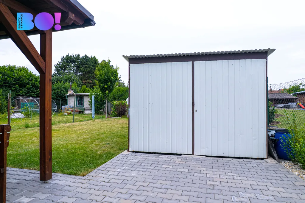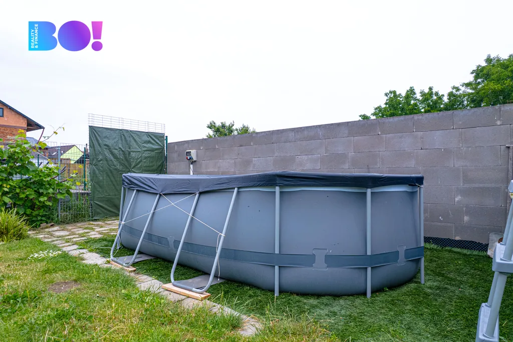 Nemovitost se pyšní prostornou zahradou, která je vhodná pro hry dětí a rodinné grilování. Zahrada je obohacena o samostatně stojící nadzemní bazén a skleník. Děti si budou moci užít radost z koupání v letních měsících a zahradničení nebo sbírání plodů ze skleníku. Garáž a další parkovací místa na pozemku zajistí bezproblémové parkování.