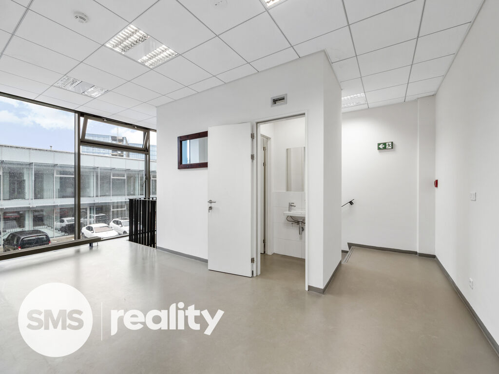 Celá jedna stěna je prosklená, takže prostor je maximálně světlý a působí vzdušně. Nechybí klimatizace, vysokorychlostní internet, ani vlastní kuchyňka a sociální zázemí. Kancelář je připravena k okamžitému nastěhování.