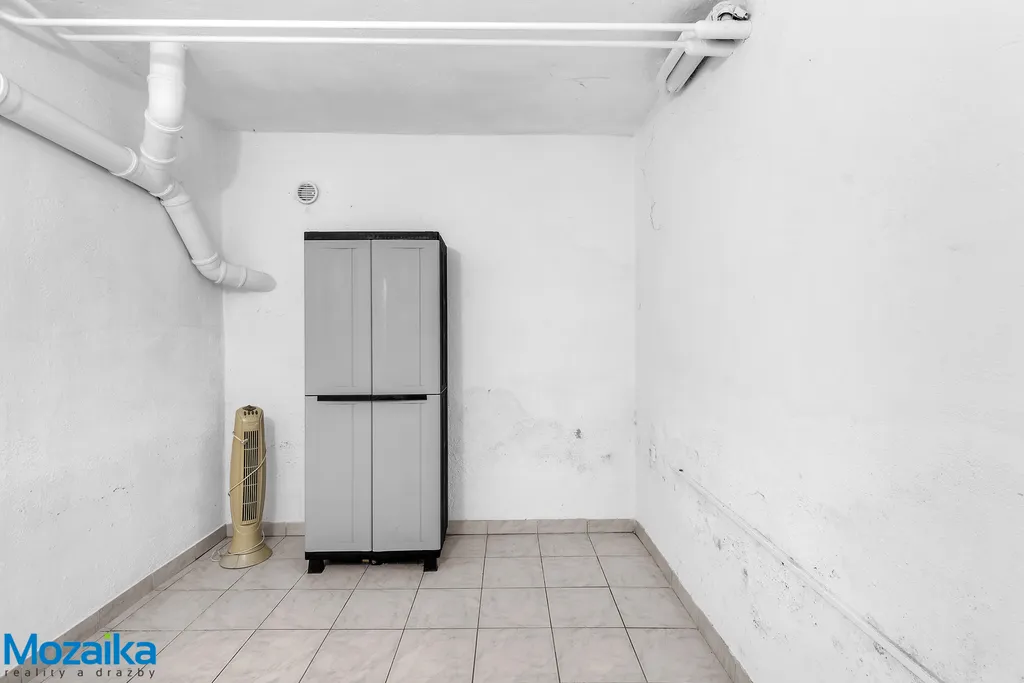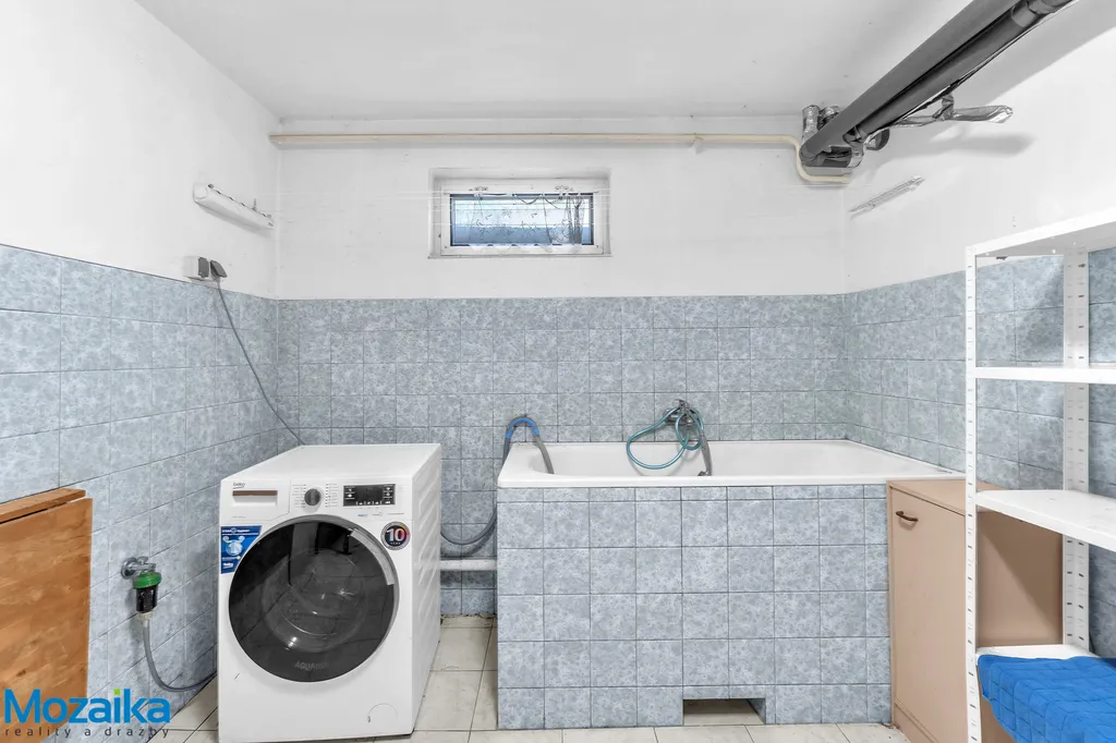 Stavba je z větší části podsklepená , zateplená polystyrenem (10–15 cm). Ve sklepě najdete předsíň, kotelnu s kondenzačním plynovým kotlem BAXI (2020), prádelnu, sklad a technické zázemí s vodárnou napojenou na vlastní studnu a filtrací.
