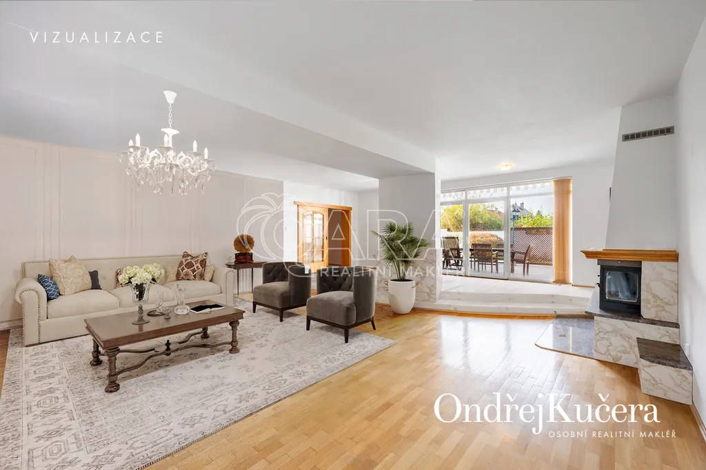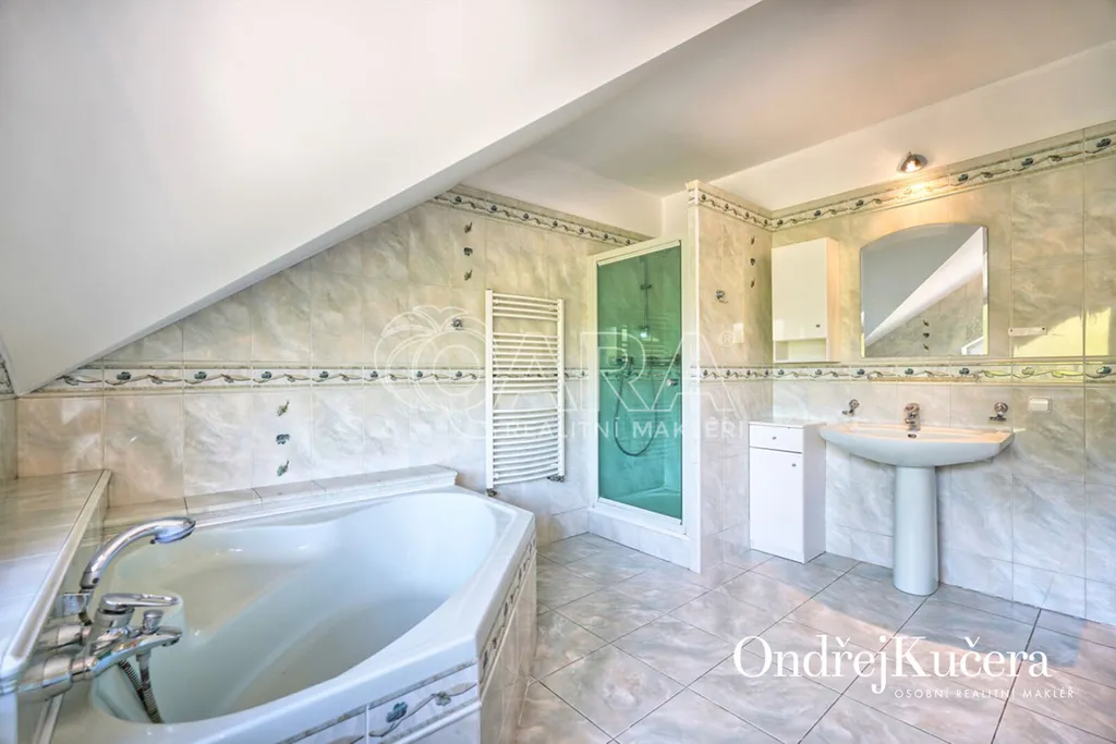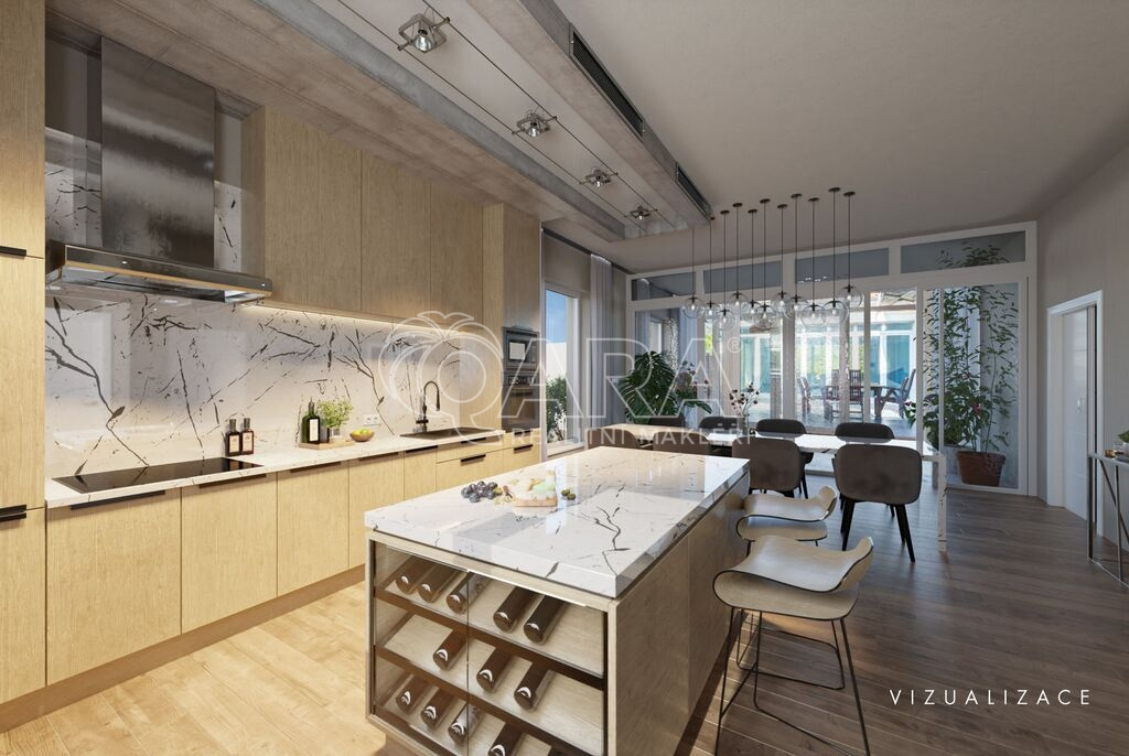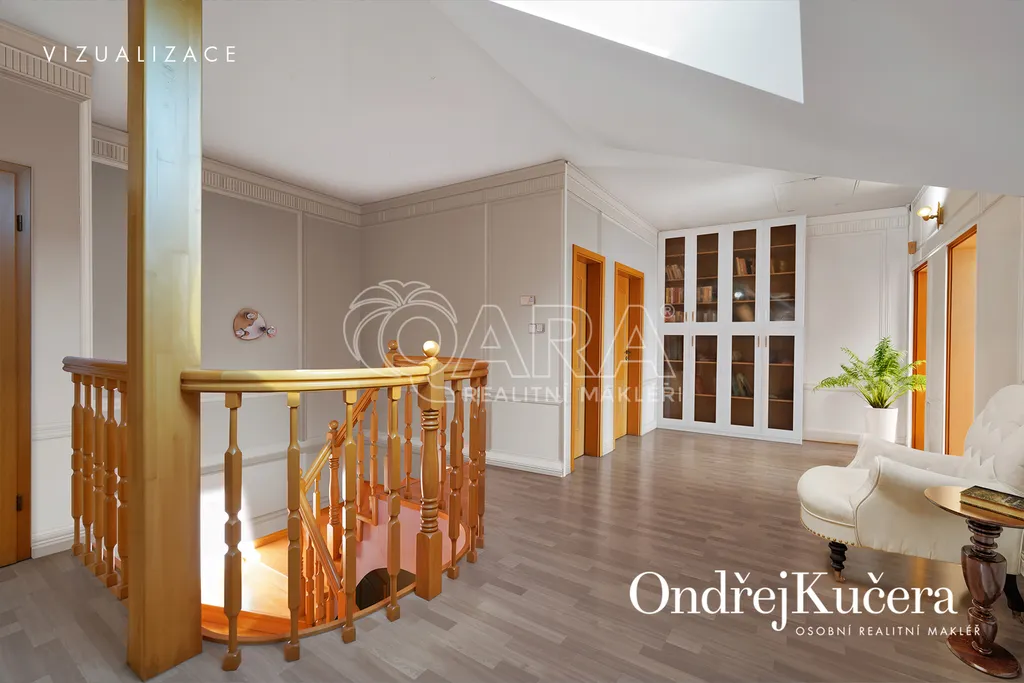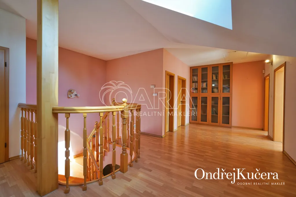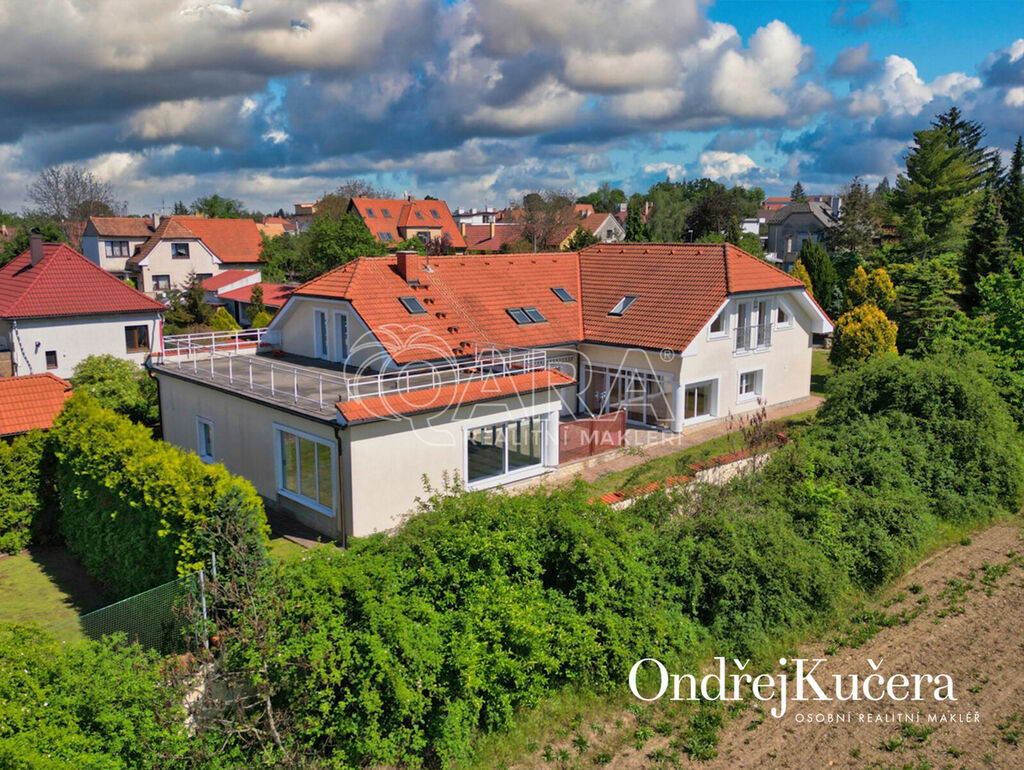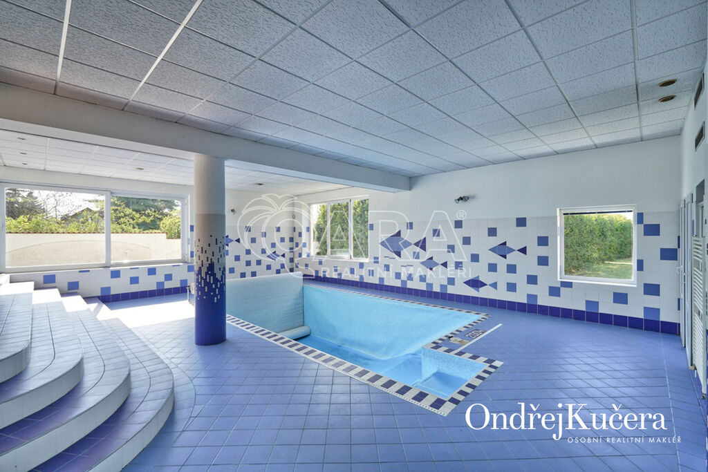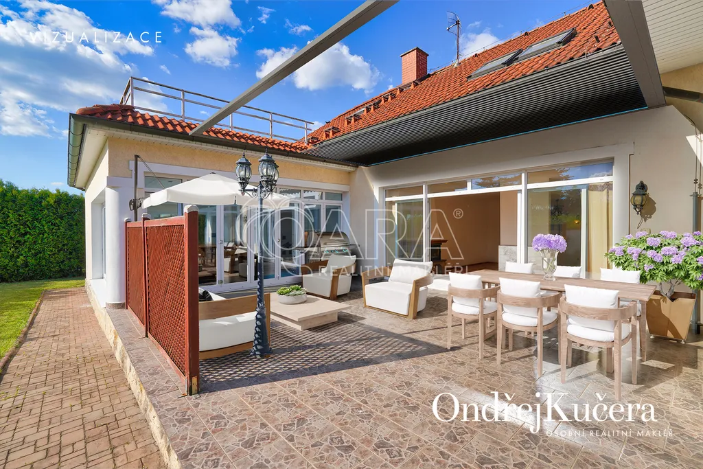 - Velkorysá dispozice 7+1, dvojgaráž, slunná terasa, zimní zahrada, krytý bazén, 85 m² střešní terasa s výhledem a mnoho dalšího.