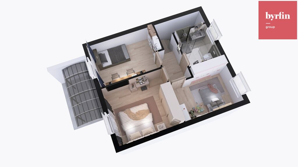 V ceně je zahrnut také 1/3 podíl na pozemku o výměře 182 m², který tvoří příjezdovou cestu a parkovací stání.