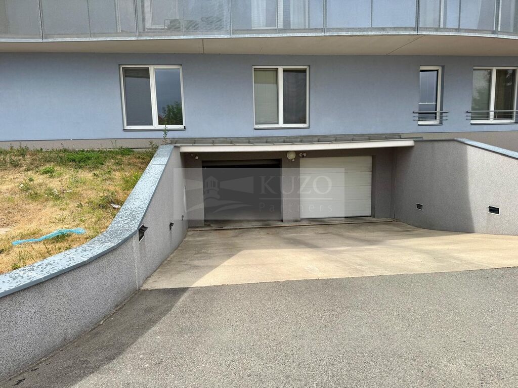 K bytu náleží garážové parkovací stání a venkovní parkovací plocha pro dva automobily – celkem tedy až tři parkovací místa.
